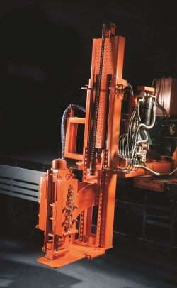 Todos os componentes relativos à movimentação da torre, bem como o próprio martelo funcionam por ação hidráulica, impulsionados por bomba de engrenagens acionada por motor à combustão diesel.