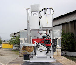6. Sistema de aquecimento com queimador a diesel, acionado por um gerador de 2 Kva ligado ao motor, o sistema possui também um termostato para controle das temperaturas mínimas e máximas do termoplástico.